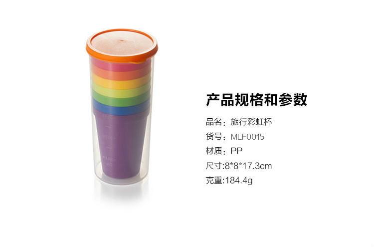 產(chǎn)品特點(diǎn):旅行彩虹杯,PP材質(zhì)更加安全健康,磨砂質(zhì)感,不打滑,邊緣光滑無(wú)毛刺,買一得八超劃算